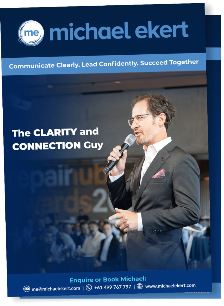 Michael Ekert is a communication specialist, keynote speaker, MC and facilitator who helps leaders and teams communicate clearly, build stronger relationships and create real-world results through practical and simple tools.